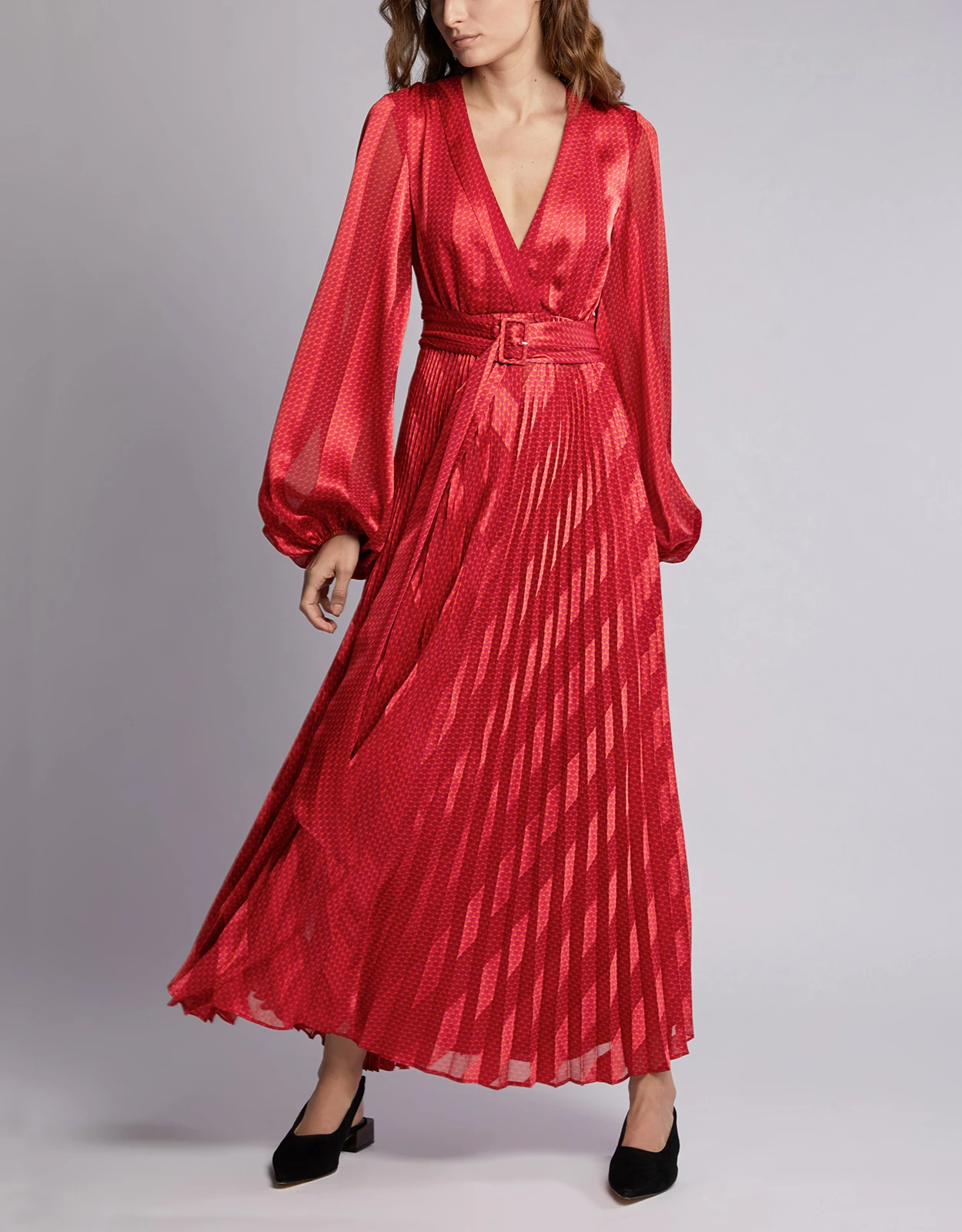 Alexis Salomo V-neck Geo Striped Pleated Maxi Dress