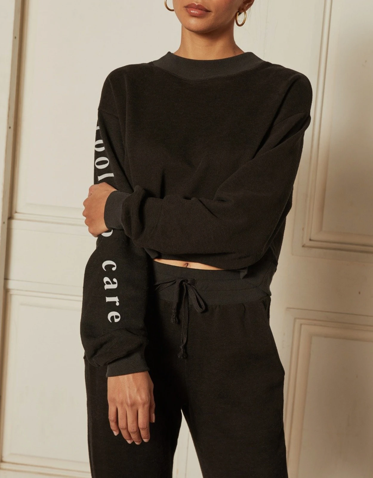 Boyish Jeans The Joni Cropped Sweatshirt-Black Cool To Care