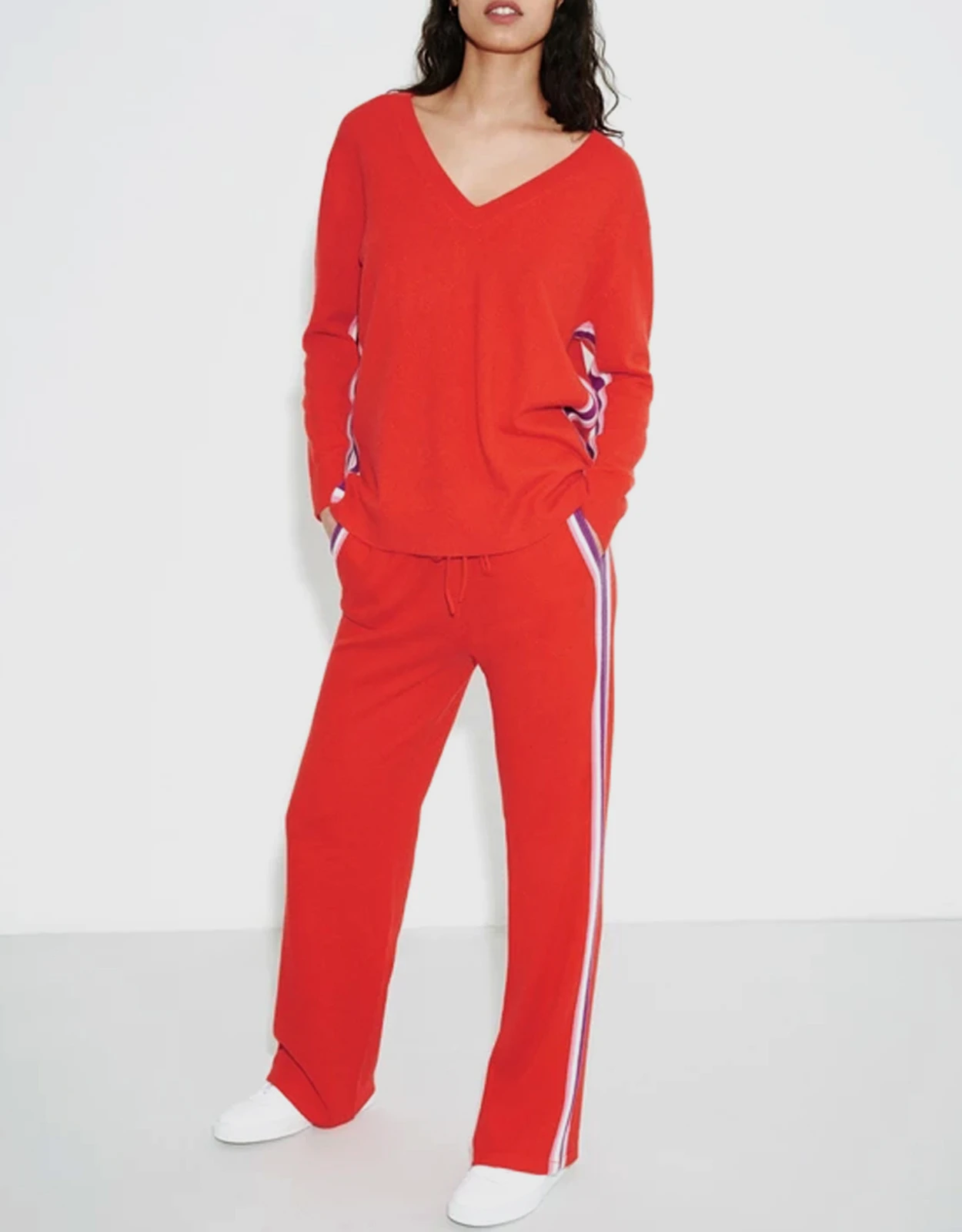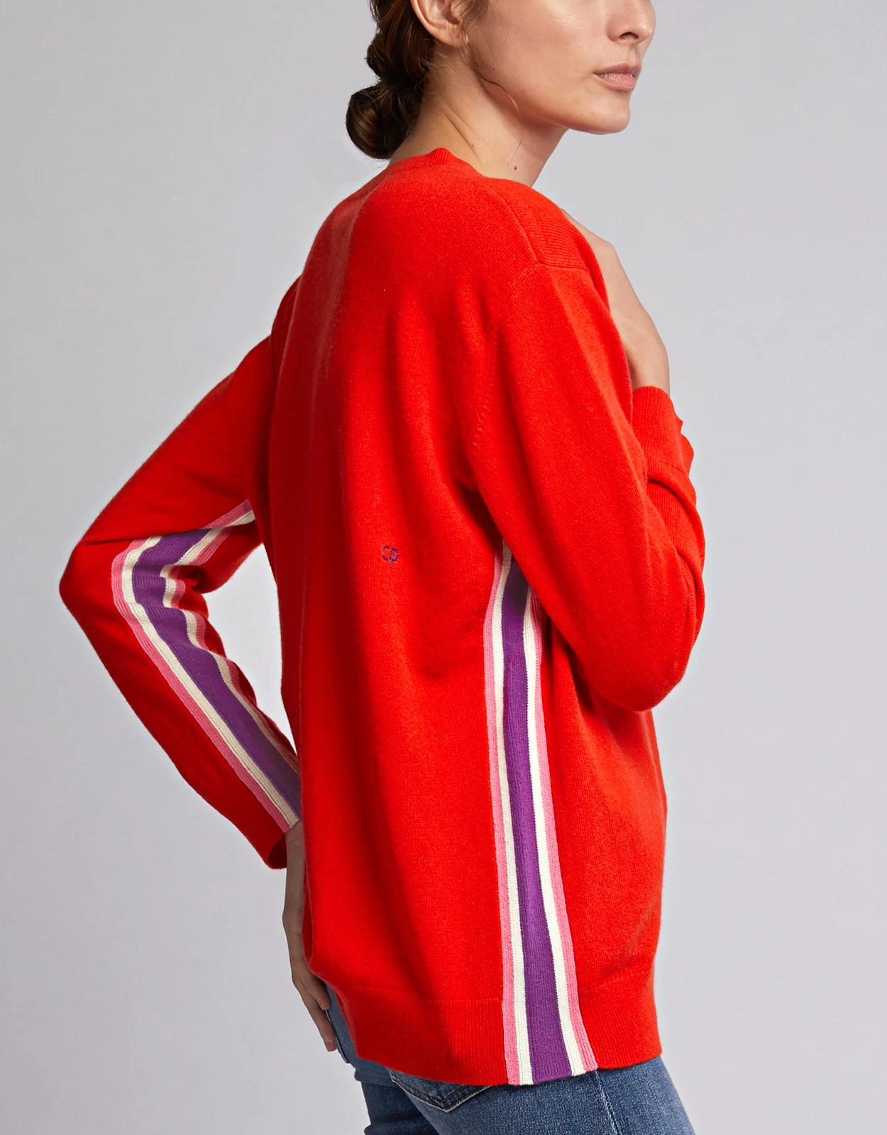 Chinti & Parker Heritage V-Neck Striped Wool-Cashmere Sweater