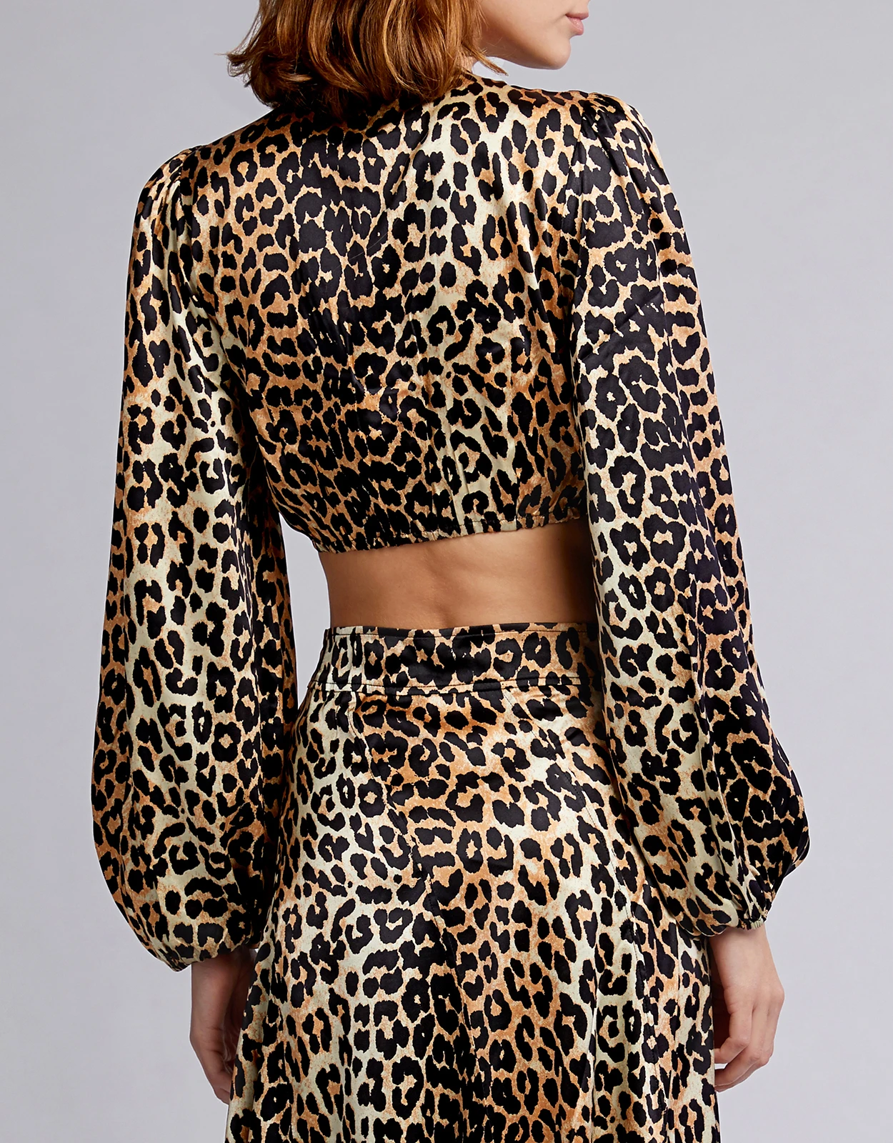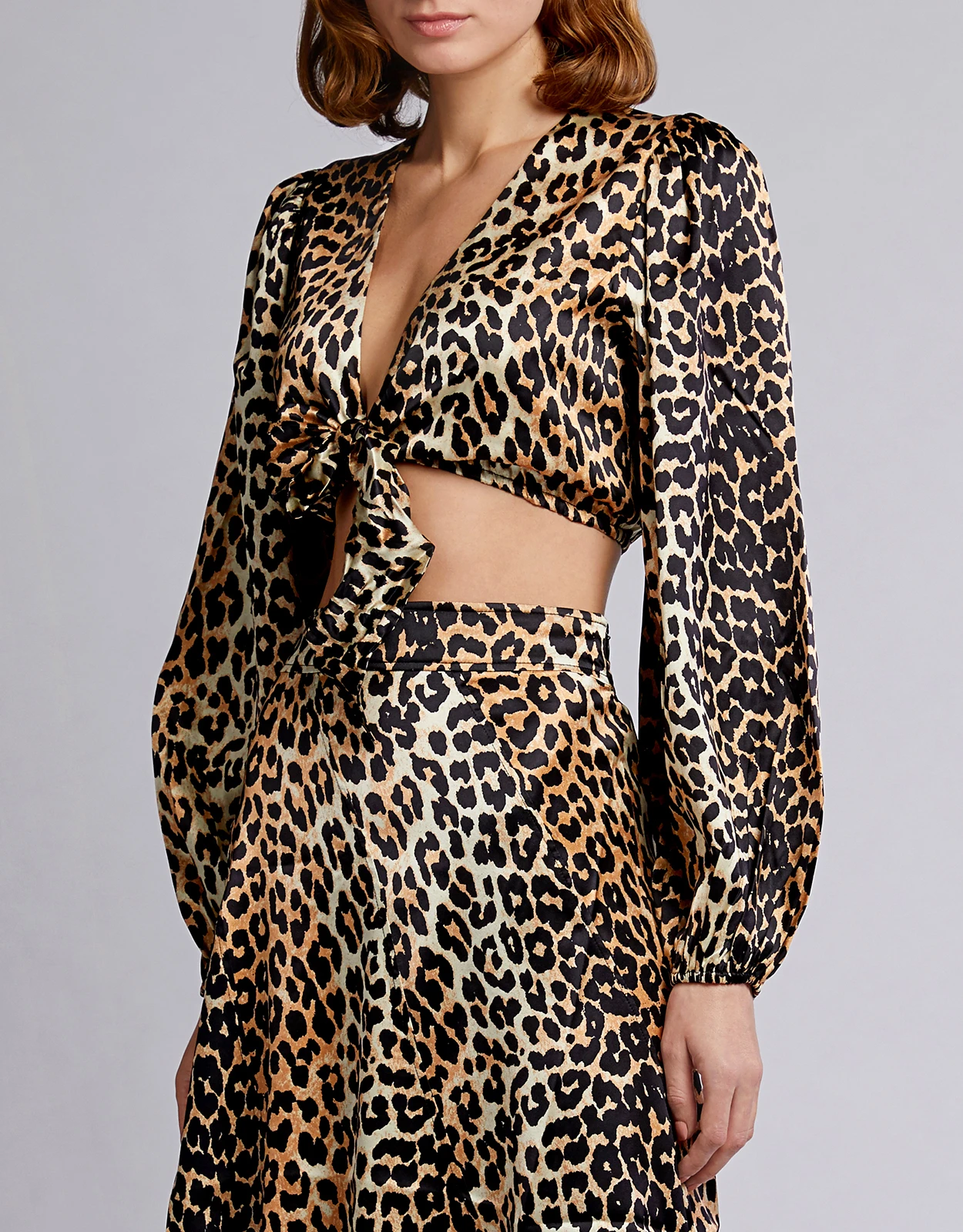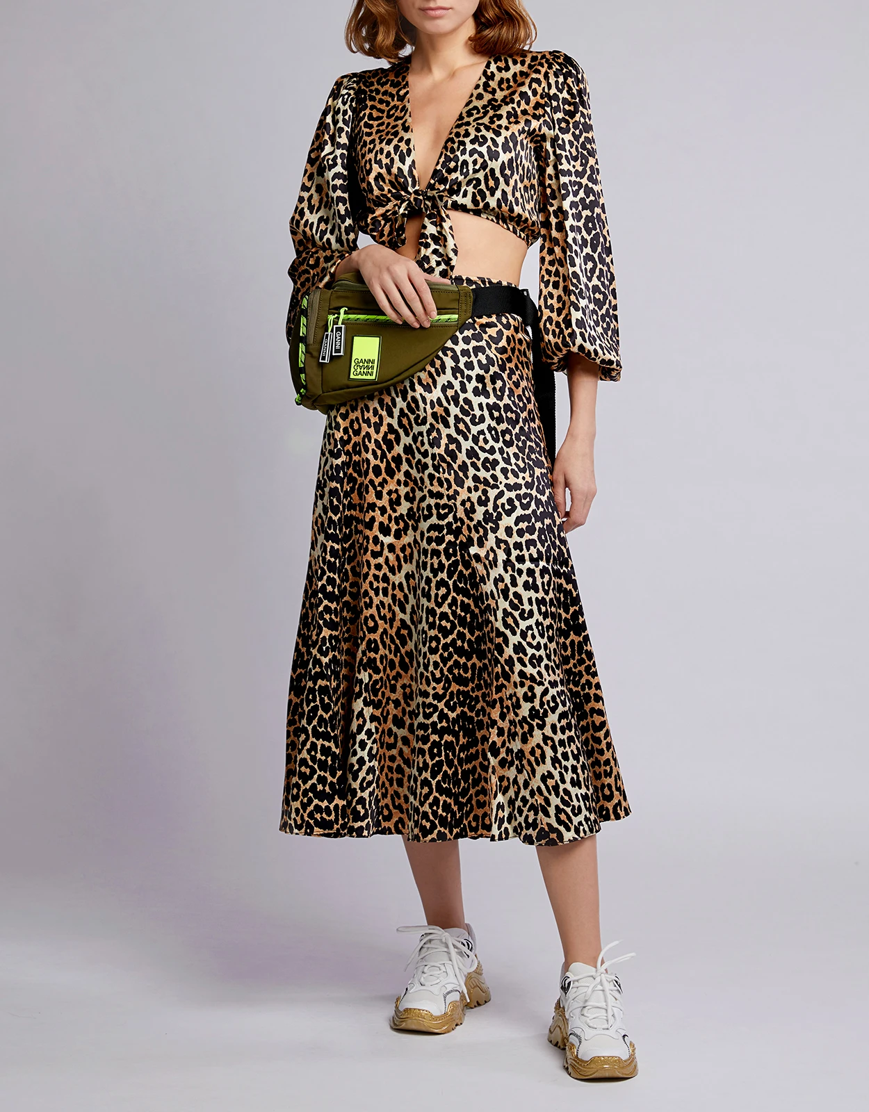 Ganni Blakely Leopard Silk-blend Cropped Top