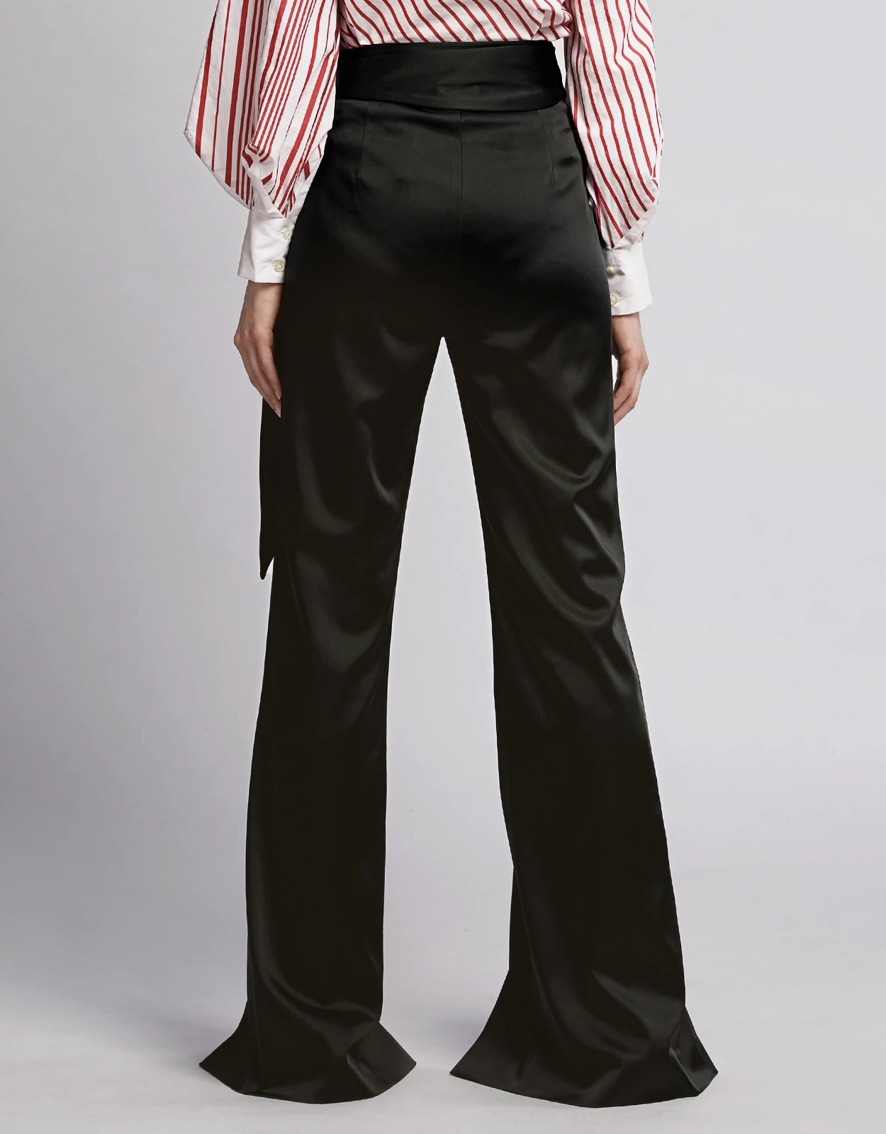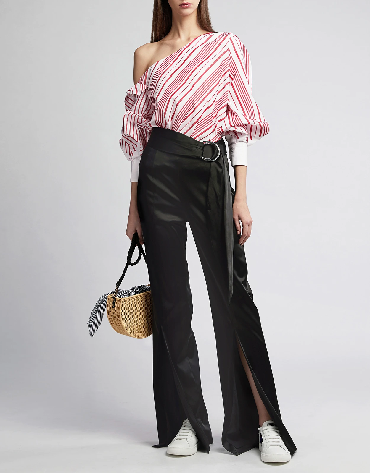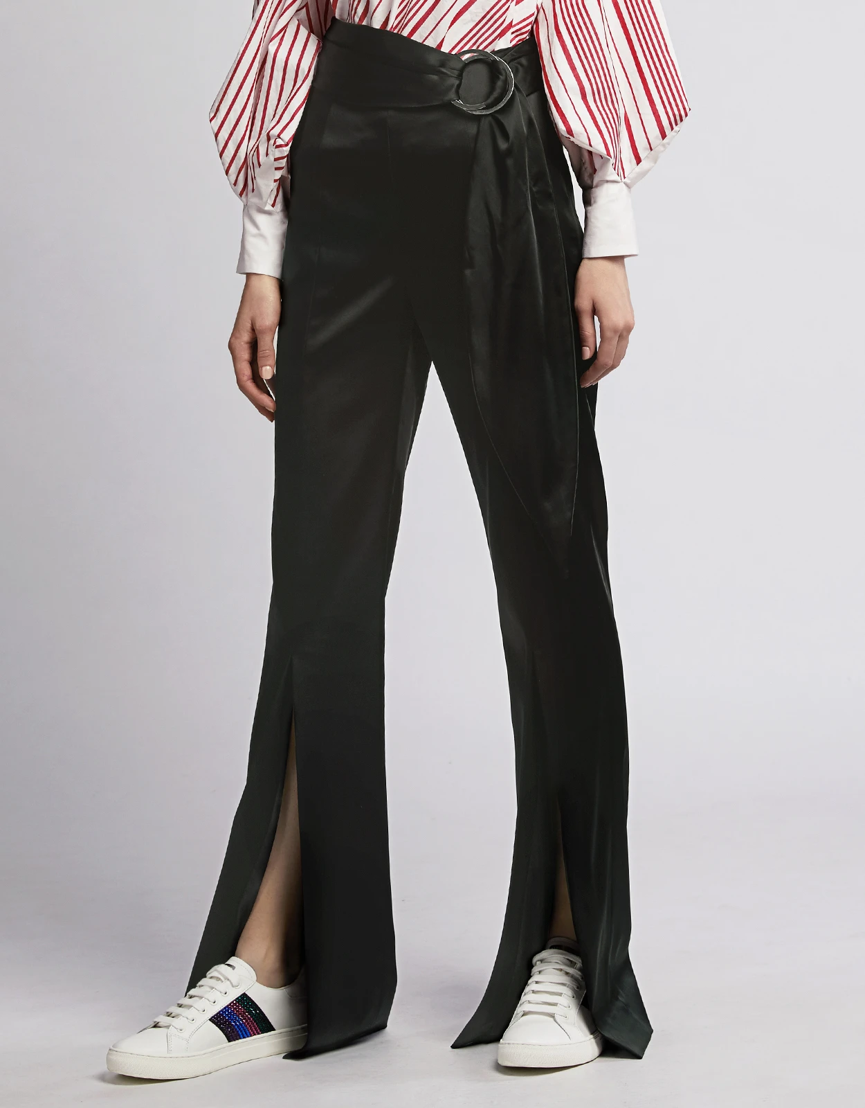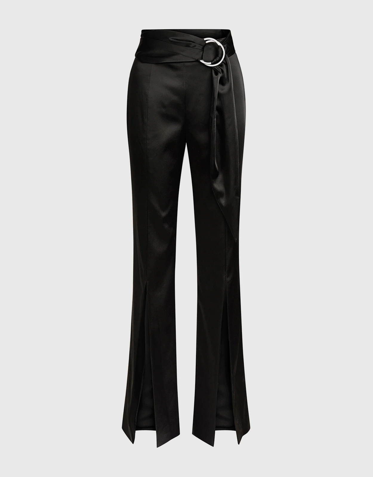 Jonathan Simkhai Satin Front Slit Belted High-rise Pants
