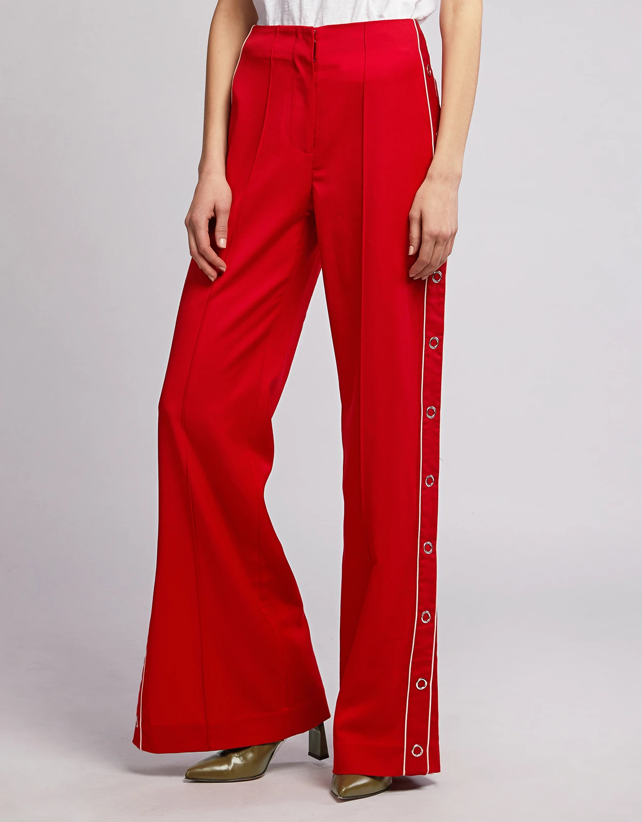 Jonathan Simkhai Wool Ring Snap Side Open Wide-leg Pants
