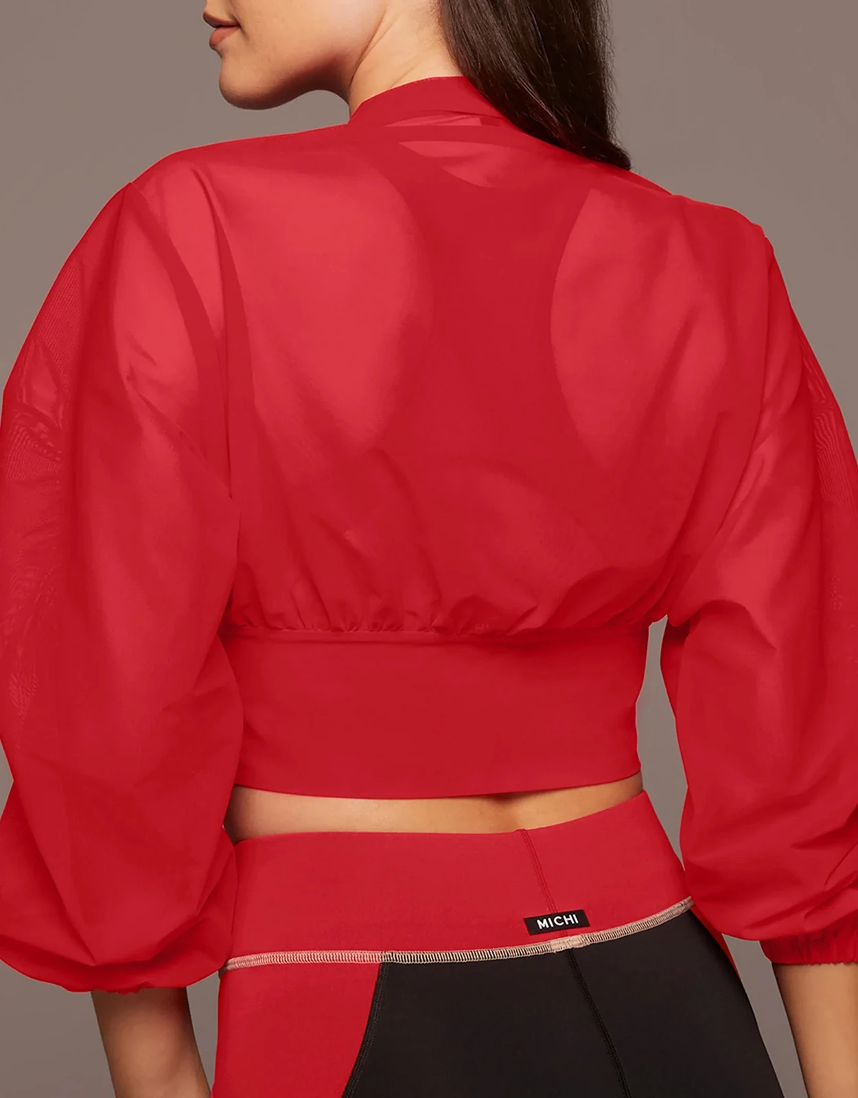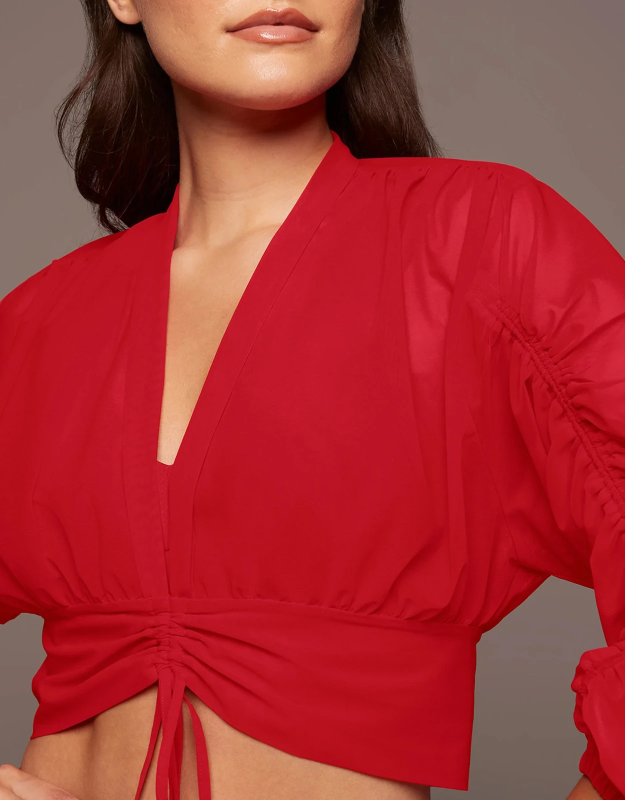 Michi Maverick Long Sleeve Cropped Top-Fire Red