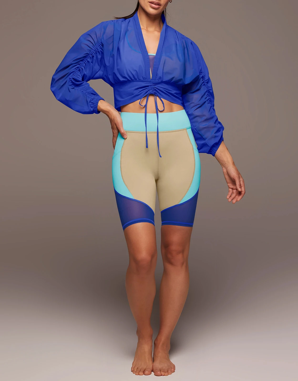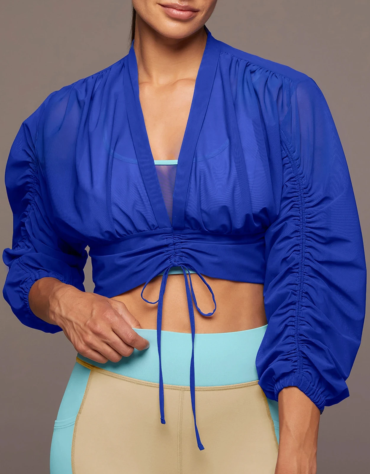 Michi Maverick Long Sleeve Cropped Top-Royal Blue