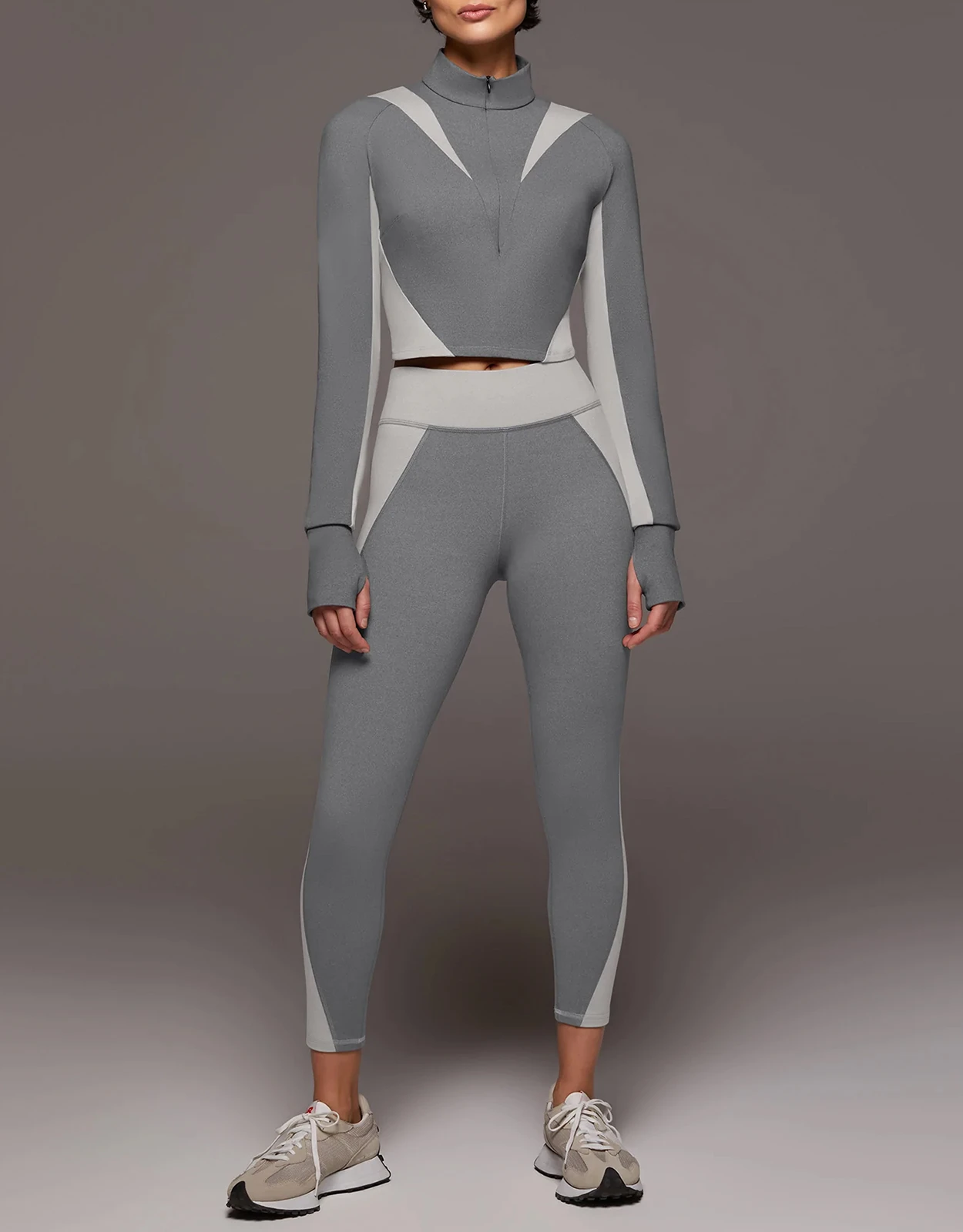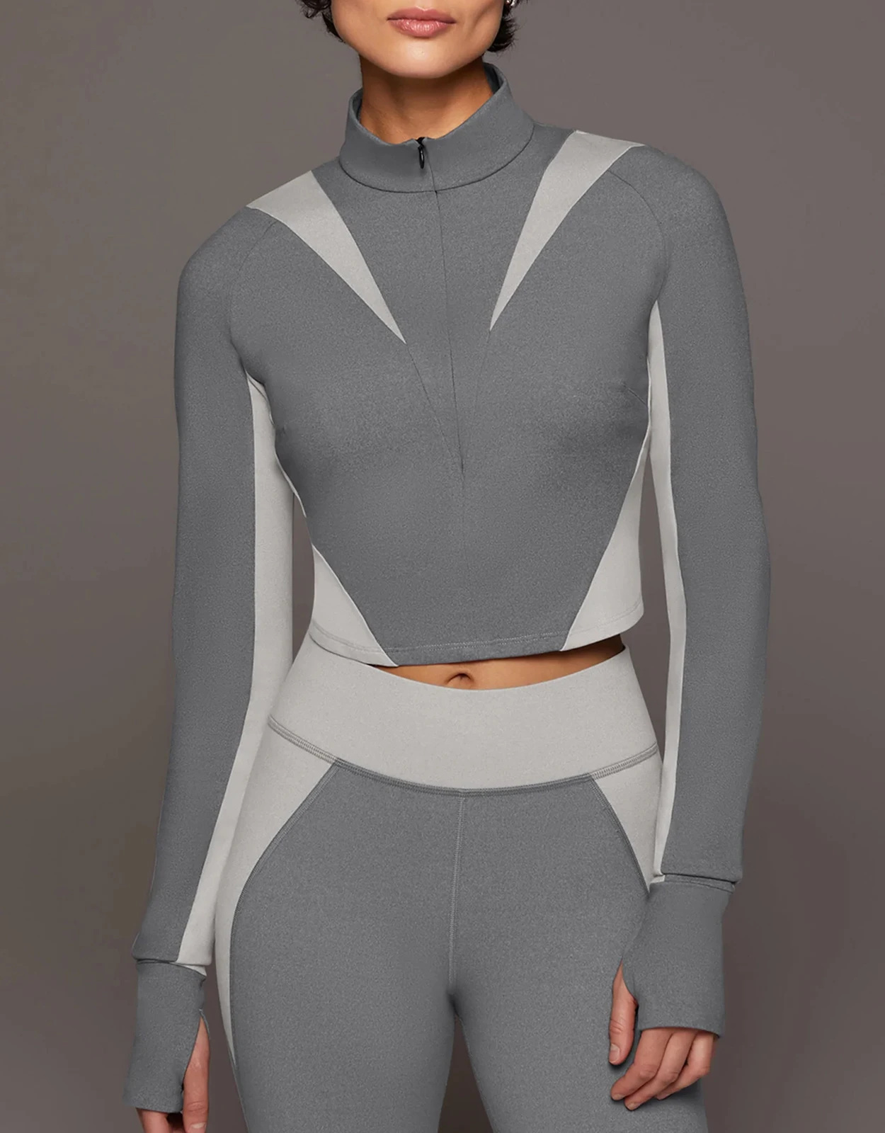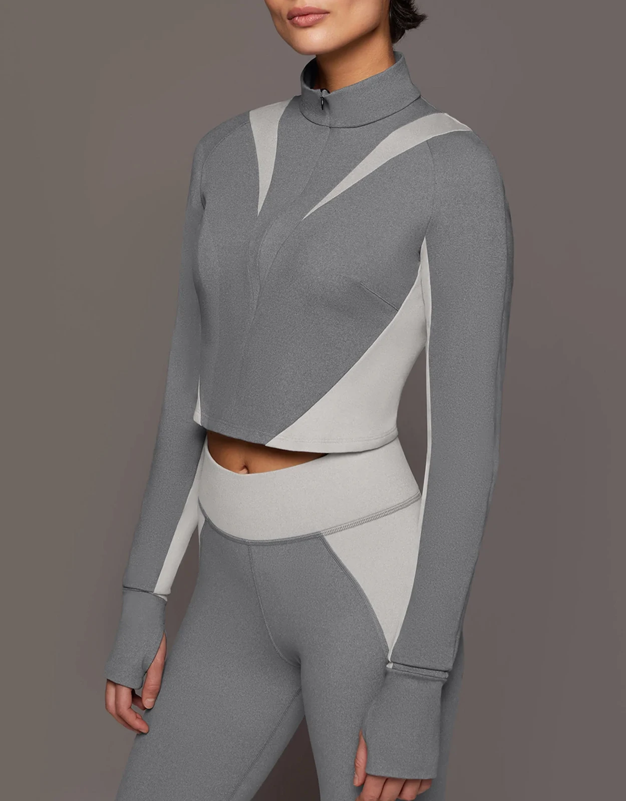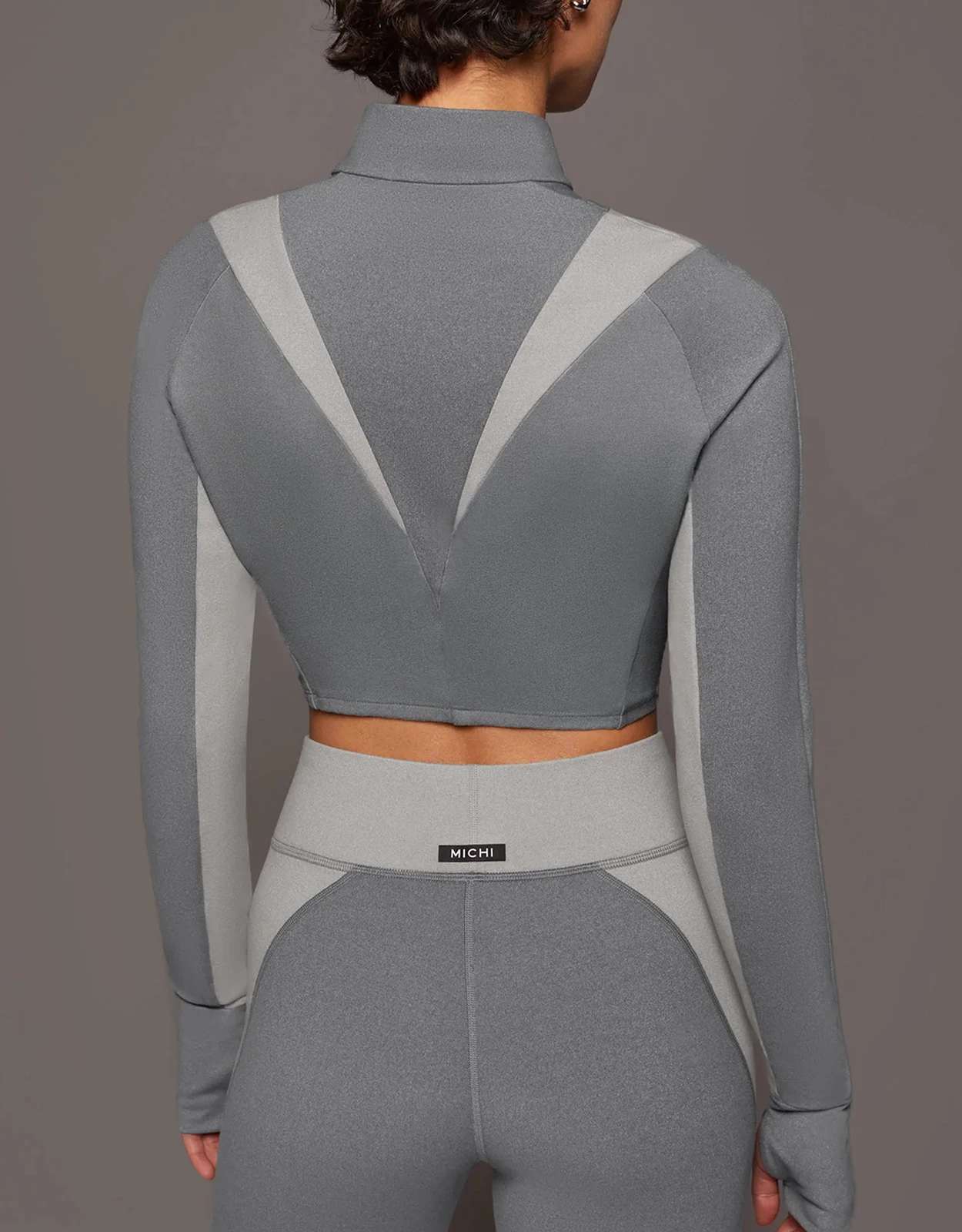 Michi Nordic W.Compress Long Sleeve Crop Top-Moonstone/Granite Grey
