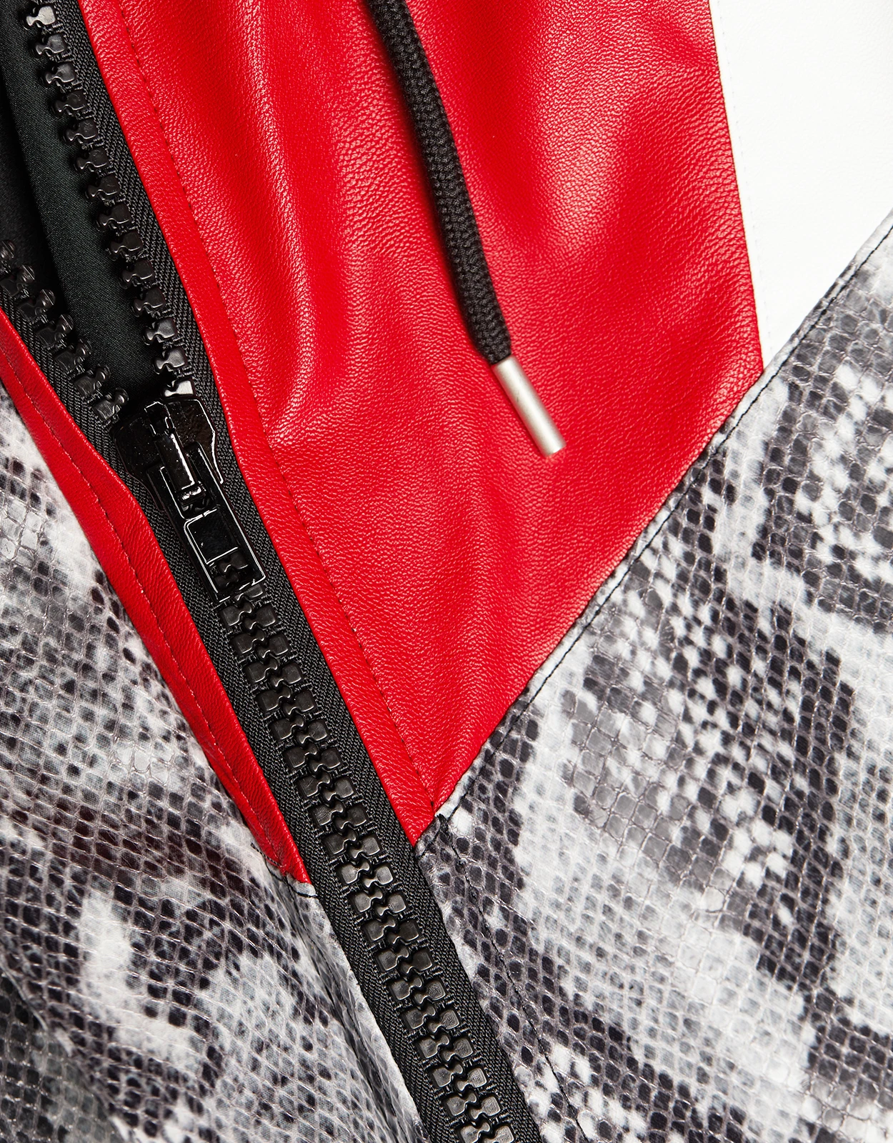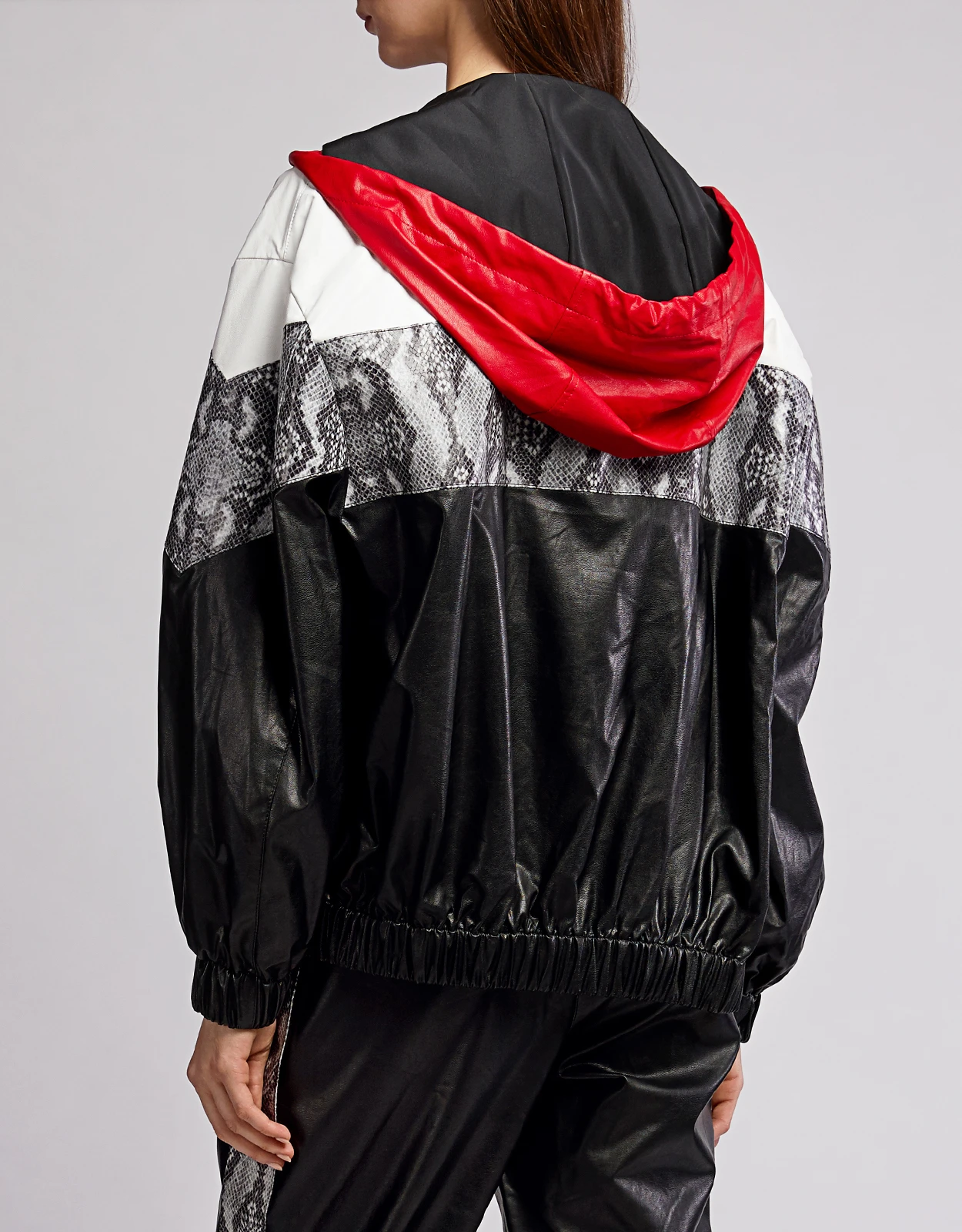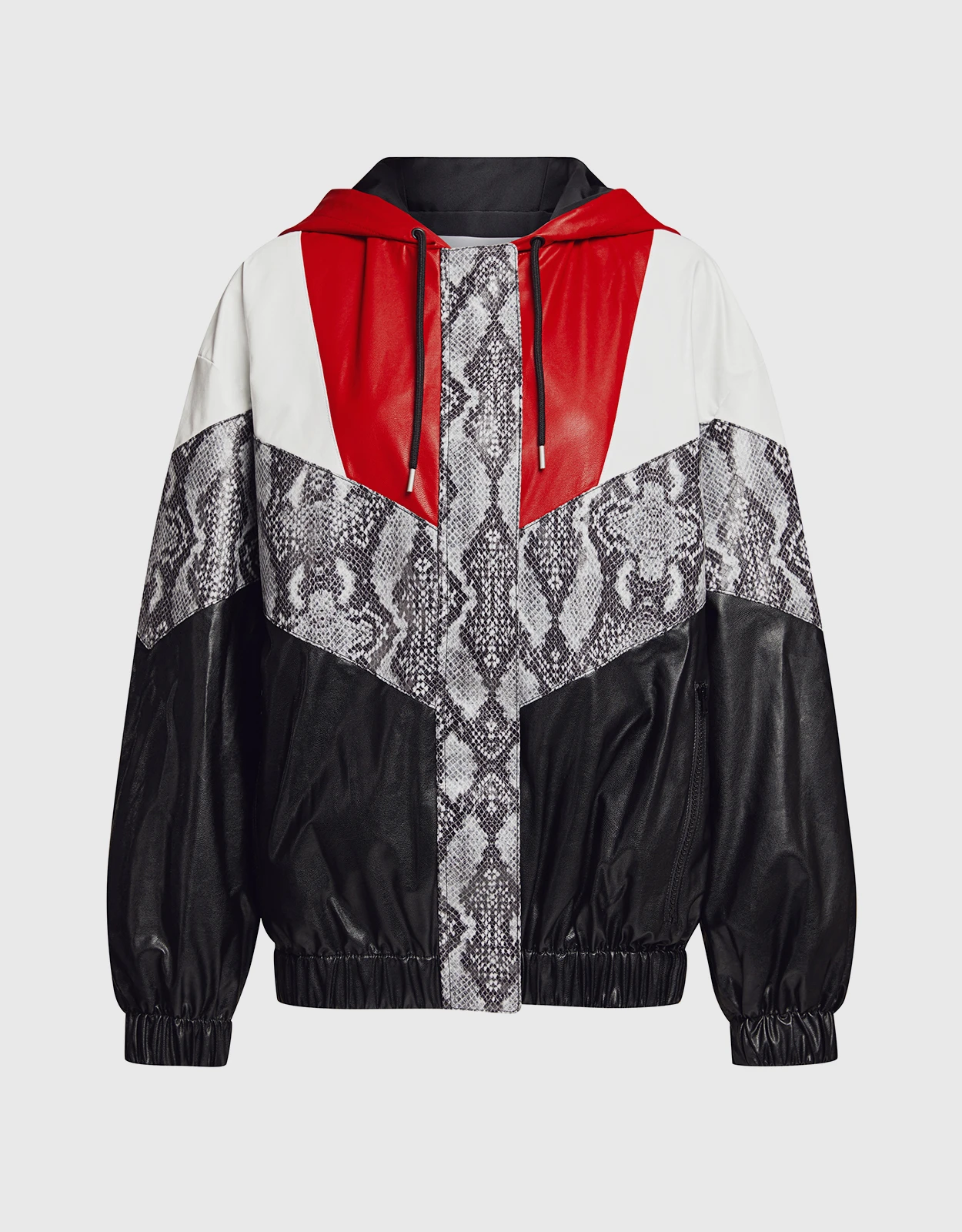MSGM Snake Skin Patchwork Faux Leather Hoodie Jacket