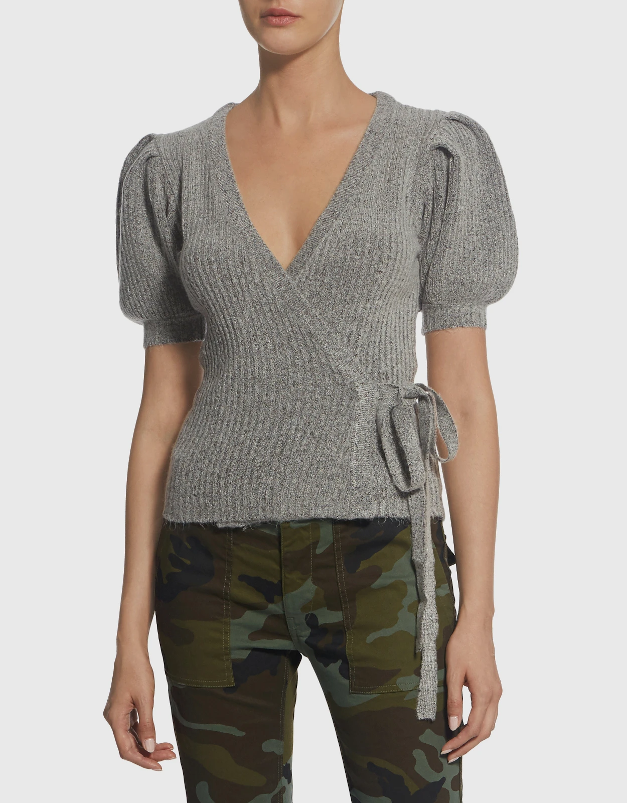 Rachel Comey Agita V-neck Puff Sleeve Wrap Cropped Knit Top