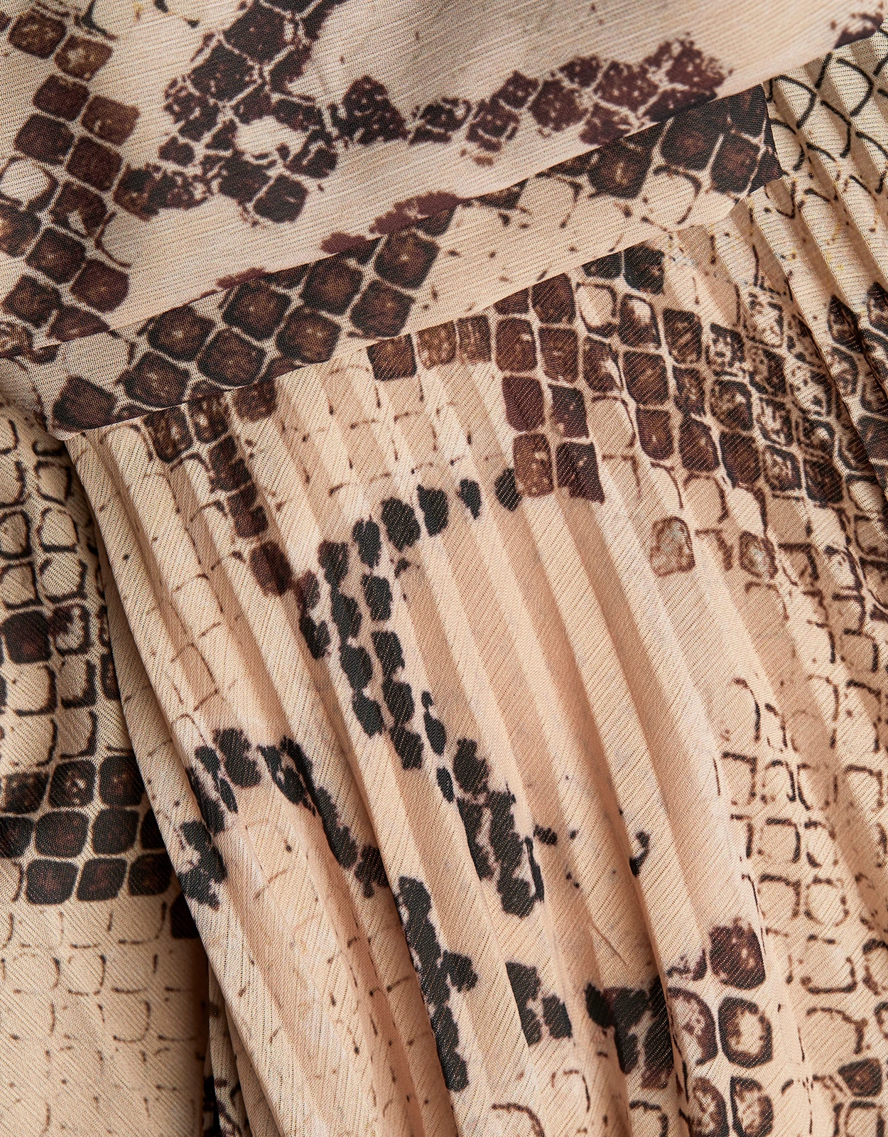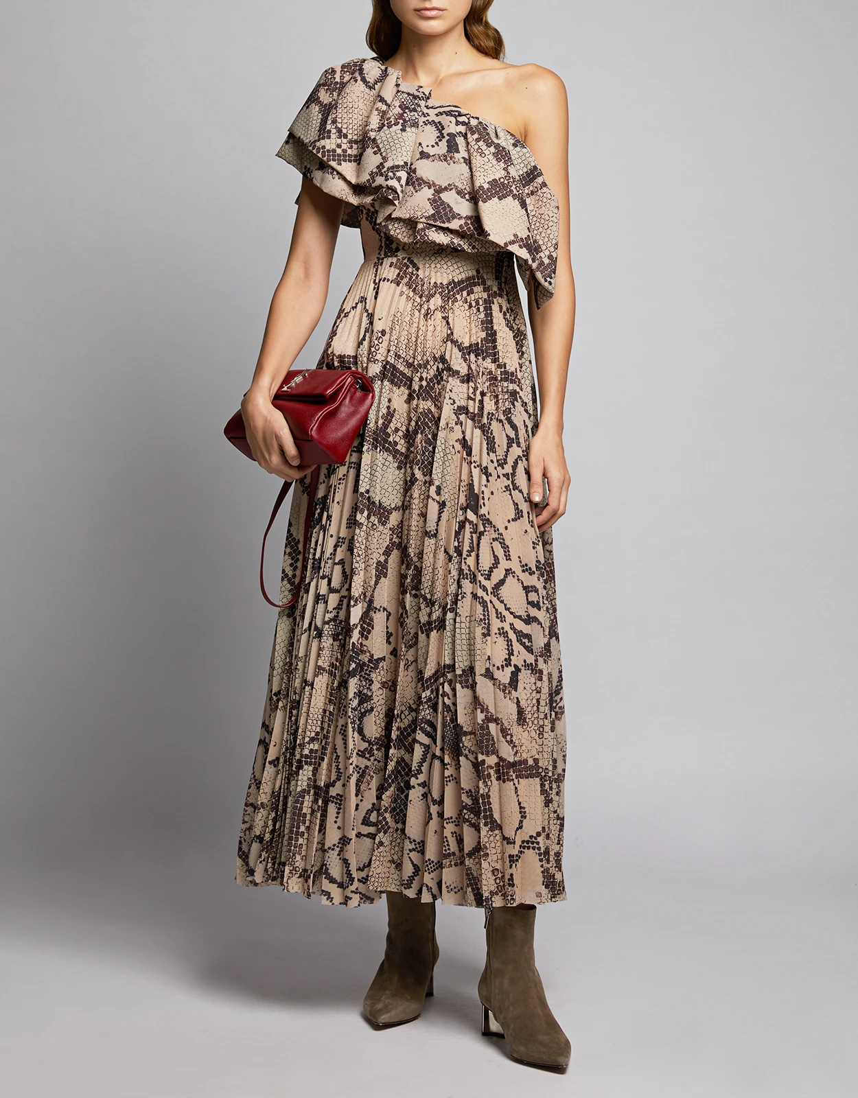 Solace London Rosa One-shoulder Snake Print Ruffle Pleated Maxi Dress