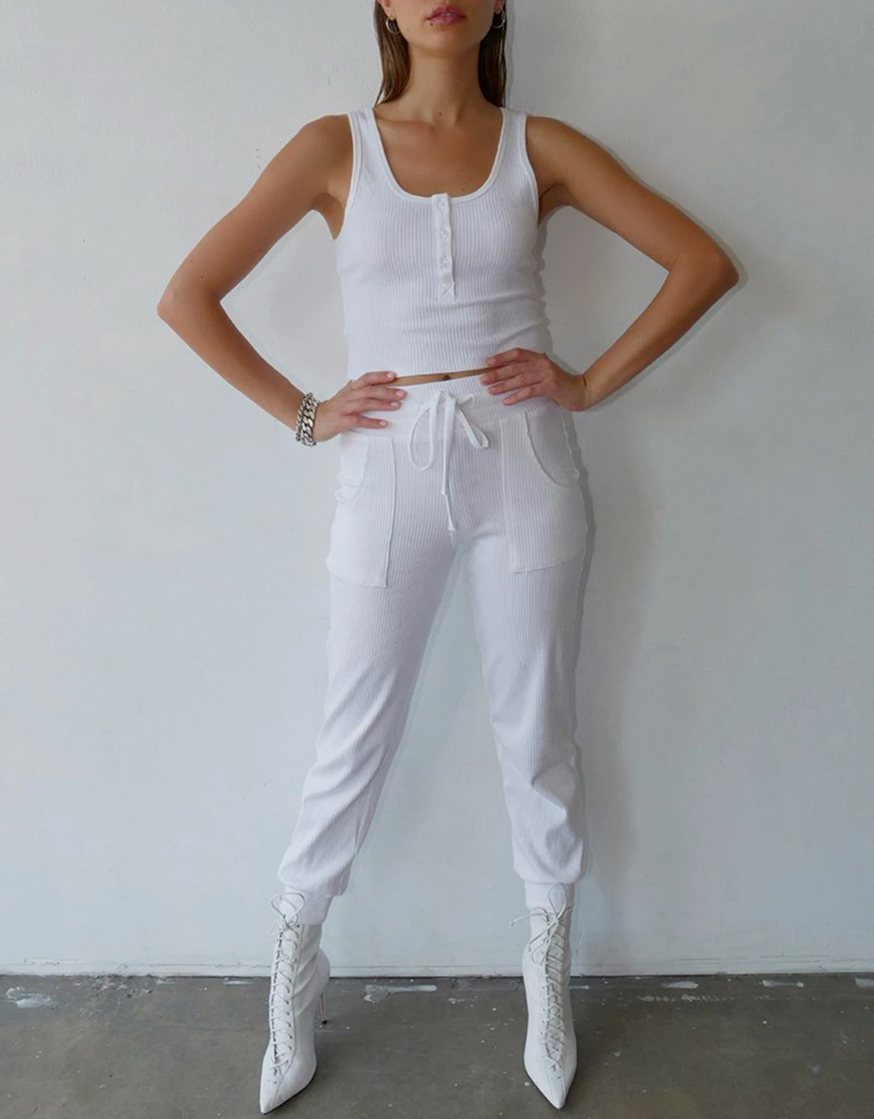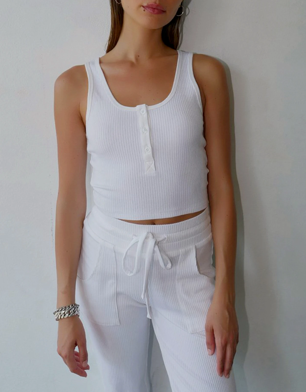 The Range Alloy Rib Cropped Henley Tank